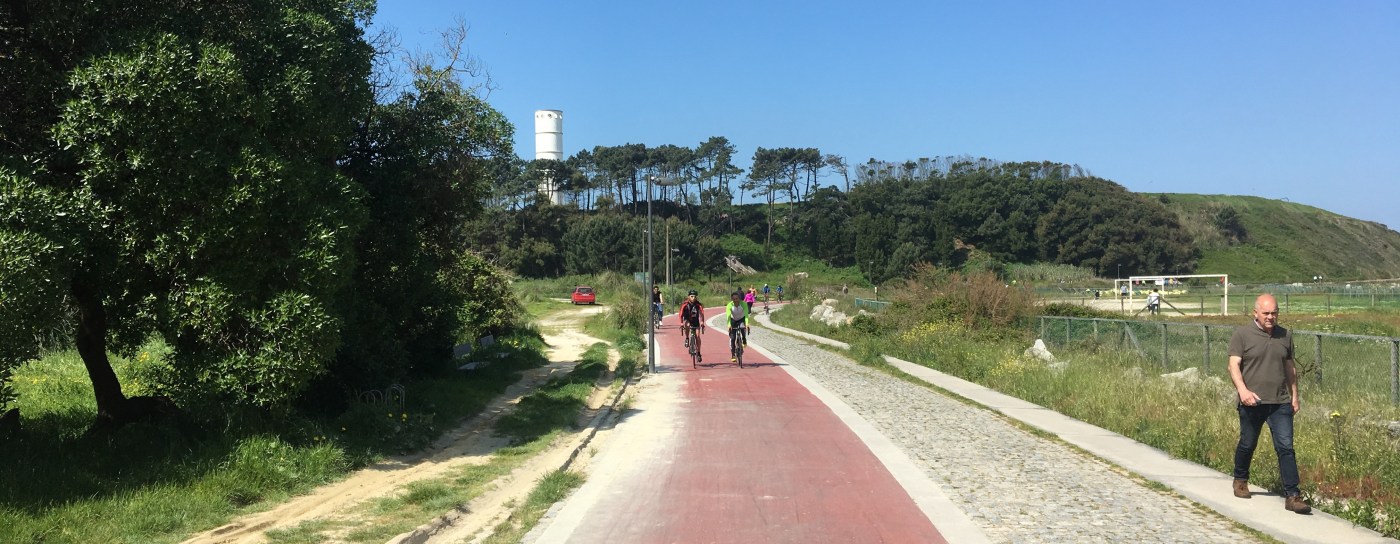 A desvantagem de caminhar em dias de sol, à beira mar, é a quantidade de gente que tem exatamente o mesmo plano. Pessoas a pé e de bicicleta, animais de estimação, famílias inteiras, crianças de triciclo, carrinhos de bebé, avós em bengalas, todos a trabalhar para recuperar a vitamina do sol.
